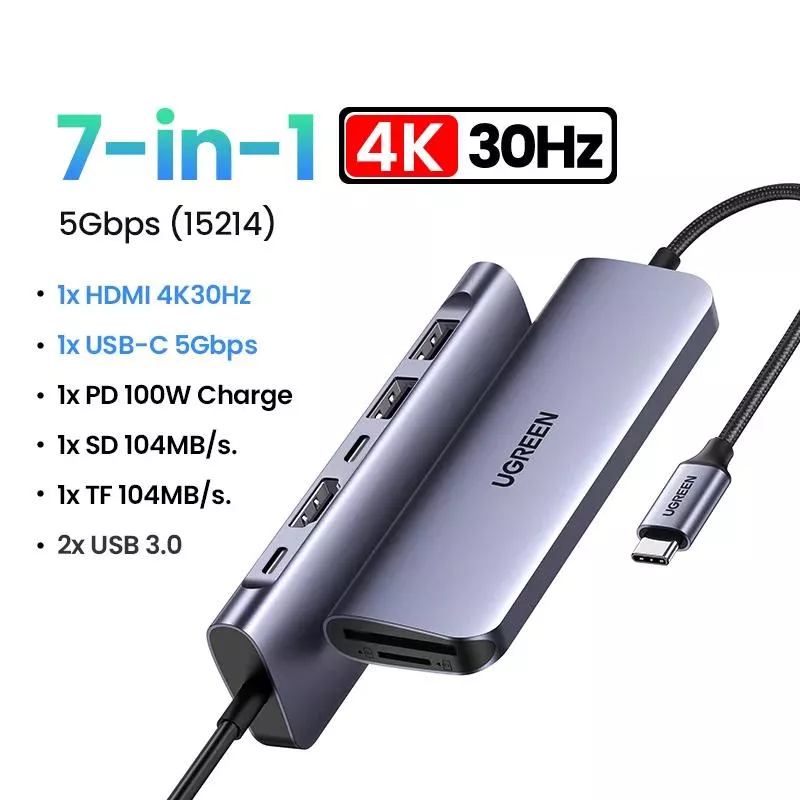 Turn a single USB-C port into a powerful workstation. This 7-in-1 USB-C hub is the ultimate all-in-one solution for connecting, charging, and sharing your devices. With a brilliant 4K HDMI output, ultra-fast 5Gbps data ports, 100W power delivery, and dual card readers, it’s designed to keep up with your workflow—whether you’re working, studying, creating, or gaming.