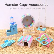- 7-in-1 Hamster Entertainment Suite: This set features a silent exercise wheel, cozy hamster house, playful pet swing, functional 2 in 1 water bottle, fun seesaw, and an engaging fitness circle. Everything you need to pamper your hamster!