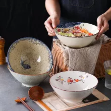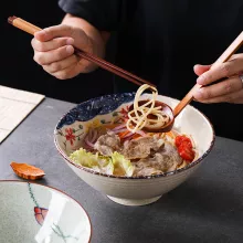 Bring a touch of Japanese-inspired design to your table with this exquisite 8-inch ceramic bowl. Perfect for serving salads, ramen, lamian noodles, or your favorite dishes, this versatile tableware combines style and functionality. Its round shape and underglaze color finish create a timeless, artisanal look that complements any dining setting, from casual meals to special gatherings.