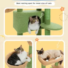 - Durable Sisal Scratching Posts: Equipped with natural sisal-covered posts and a scratching board, this tree satisfies your cat’s scratching instincts while protecting your furniture.