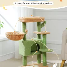 - Multi-Level Fun: This cat tree features six levels, offering multiple areas for climbing, playing, and lounging. Cats can explore the cozy condo, nap in the deep hammock, or perch on the top bed for a perfect view.