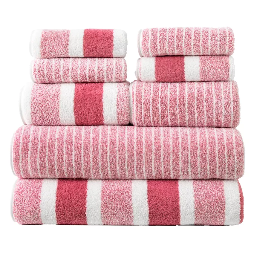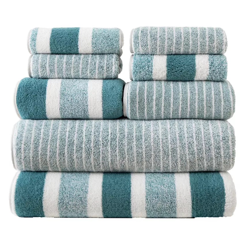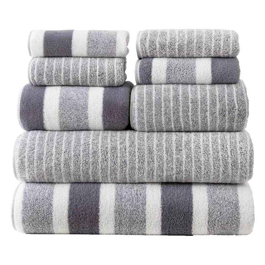 Indulge in comfort and style with this 8-piece striped towel set, perfect for any modern bathroom. Crafted from ultra-soft coral fleece, this towel set provides exceptional absorbency and a quick-drying experience, making it the ideal choice for busy mornings or a relaxing spa-like atmosphere at home. Whether you’re wrapping up after a hot shower or simply adding a touch of elegance to your bathroom, this towel set elevates your daily routine.