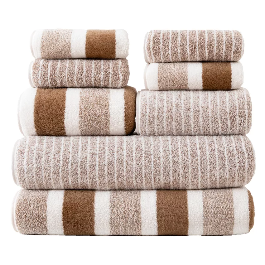 - Modern Striped Design: Featuring a contemporary striped pattern in stylish colors like Green, Coffee, Gray, and Pink, these towels add an elegant touch to your bathroom decor.