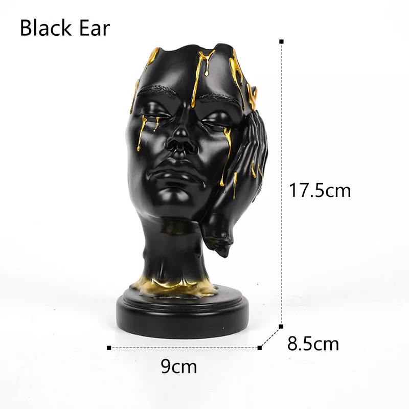 This stunning Abstract Resin Face Statue is a captivating décor piece designed to make any room feel more expressive, modern, and artistic. Crafted from smooth, high-quality resin, each statue features a symbolic gesture—covering the mouth, eyes, or ears—paired with a gentle teardrop detail that adds a touch of emotional depth. Available in white, black, or gold, this sculpture instantly elevates your interior with its clean lines and bold contemporary style.