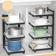 Our Adjustable Multi-Layer Kitchen Storage Rack is ideal for small to medium-sized kitchens where space is at a premium. It’s perfect for organizing pots, pans, cleaning supplies, and more, especially in under-sink areas or corner cabinets. Whether you’re a culinary enthusiast or simply seeking a tidier kitchen, this rack is your go-to solution.