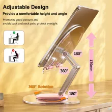 Enhance productivity, comfort, and style with the Adjustable Transparent Tablet Stand. Perfect for your iPad, iPhone, or any tablet, this stand is the ideal companion for work, entertainment, or creativity. Order now to experience ergonomic comfort and unmatched flexibility in one sleek design.
