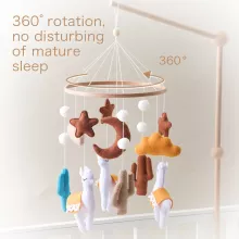 Not all crib mobiles are created equal, and this alpaca-themed masterpiece stands out for its whimsical charm and practicality. The soft textures and gentle design provide a calming visual focal point for your baby, encouraging relaxation and aiding in sensory development. Whether it’s playtime or nap time, this mobile helps set the perfect mood.