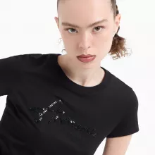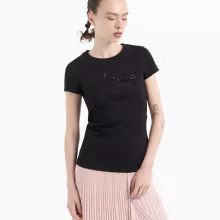 This Armani Exchange Women’s Black T-shirt offers the perfect balance of style, comfort, and versatility:
