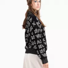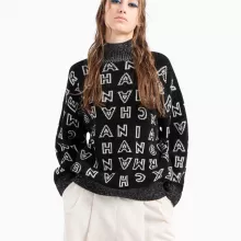 Embrace the chill in style with the Armani Exchange Women’s Black Turtleneck Knitwear. Designed for the discerning woman, this chic piece combines sophistication and practicality, making it the ultimate choice for fall and winter fashion. With its sleek black color and stylish print, this turtleneck knitwear is perfect for layering or wearing solo, offering versatility that complements any outfit.