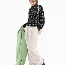 Crafted with precision and an eye for detail, this knitwear is a wardrobe essential for the colder months. Its turtleneck design provides added warmth while exuding a polished and modern look. The 100% polyester composition ensures durability, softness, and comfort, while the long sleeves and elegant print add a touch of timeless charm.