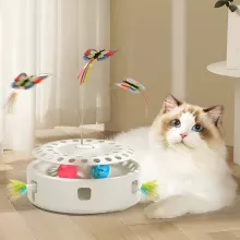 - 3-in-1 Interactive Design: Combines a teasing stick, hidden feather ambush, and track ball to provide versatile play options.