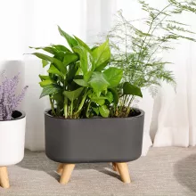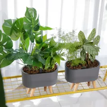 Crafted from durable plastic and wood components, this flower pot features a two-part design that promotes optimal plant health. The upper pot holds the plant and soil, while the lower reservoir stores water. A cotton rope allows water to be drawn up automatically, keeping the soil consistently moist without overwatering. Additionally, the built-in water level gauge lets you easily monitor when it’s time to refill the reservoir.