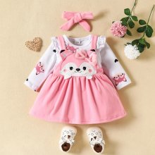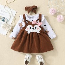 Welcome the autumn season with our charming and cozy 3-Piece Outfit Set, perfect for baby girls. This delightful ensemble features a long-sleeve ruffle romper, a cute fox print suspender skirt, and a matching headband, creating an irresistibly sweet look for your little one. Made from a soft cotton blend, this set ensures comfort throughout the day, making it ideal for both indoor and outdoor activities.