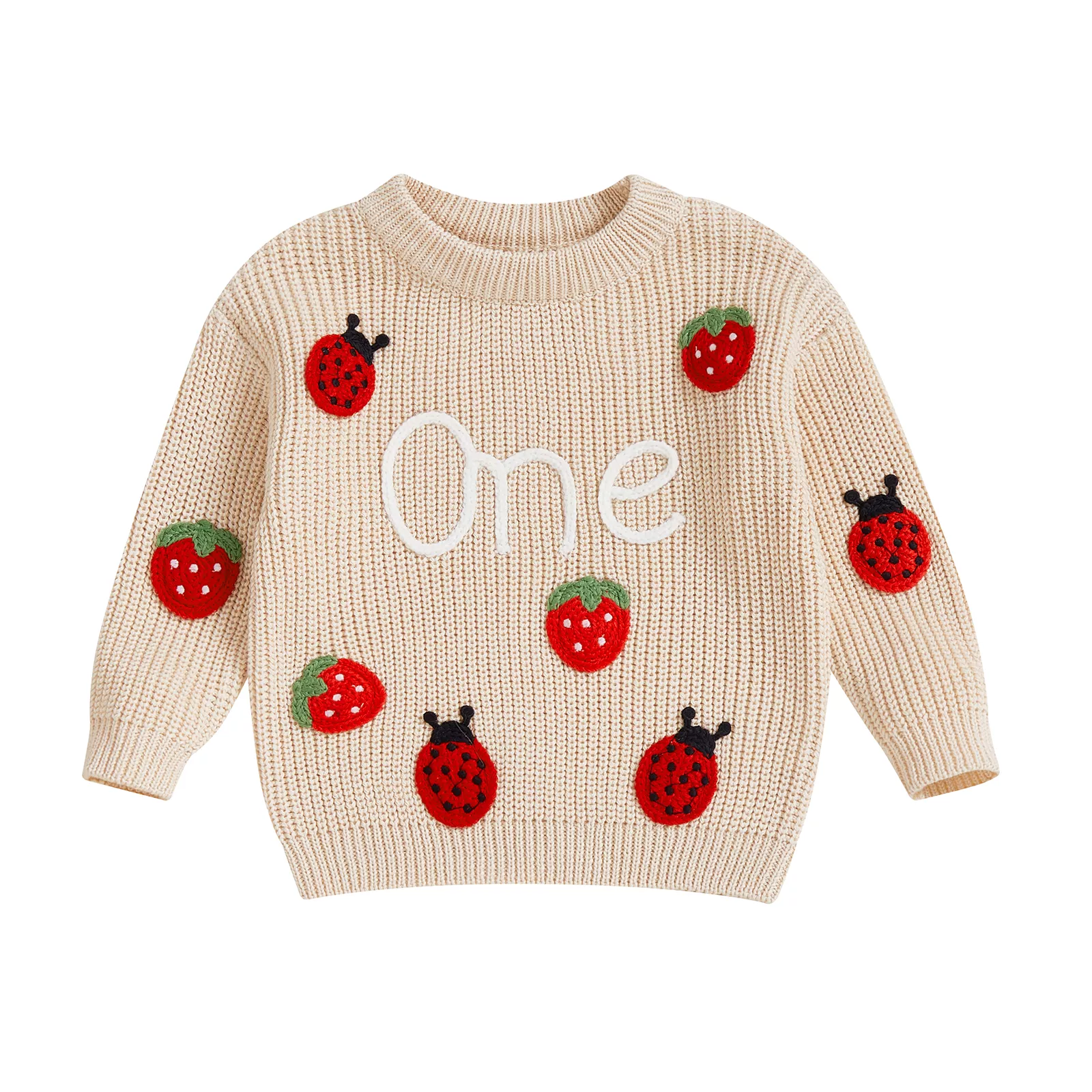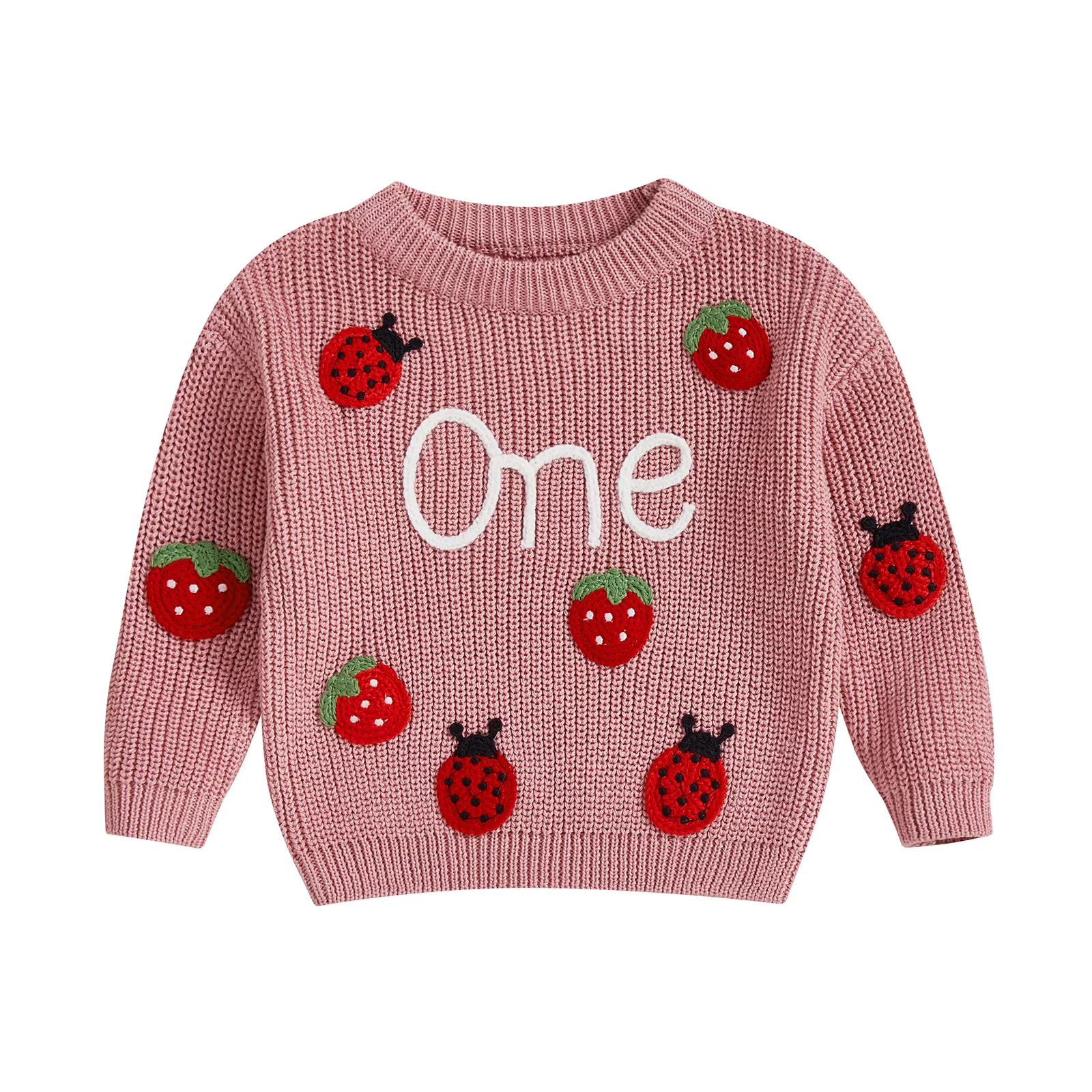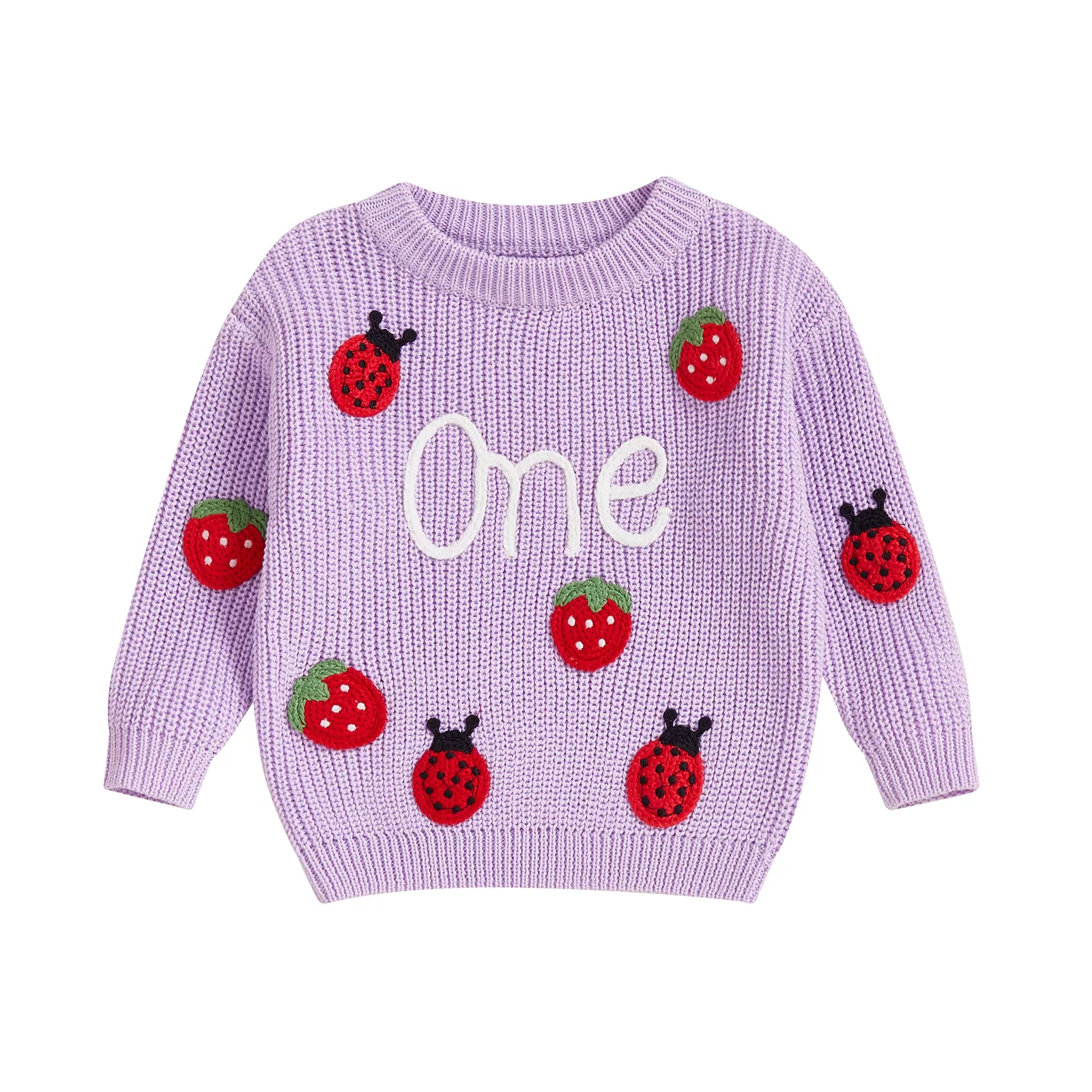 Dress your baby girl in cozy cuteness with this Strawberry Embroidered Knit Sweater. Designed for ages 9 to 18 months, this charming long-sleeve top combines comfort, warmth, and playful style. The soft knit fabric feels gentle on delicate skin, while the vibrant strawberry and letter embroidery adds a sweet, cheerful touch perfect for everyday wear or special moments like birthdays and family photos.