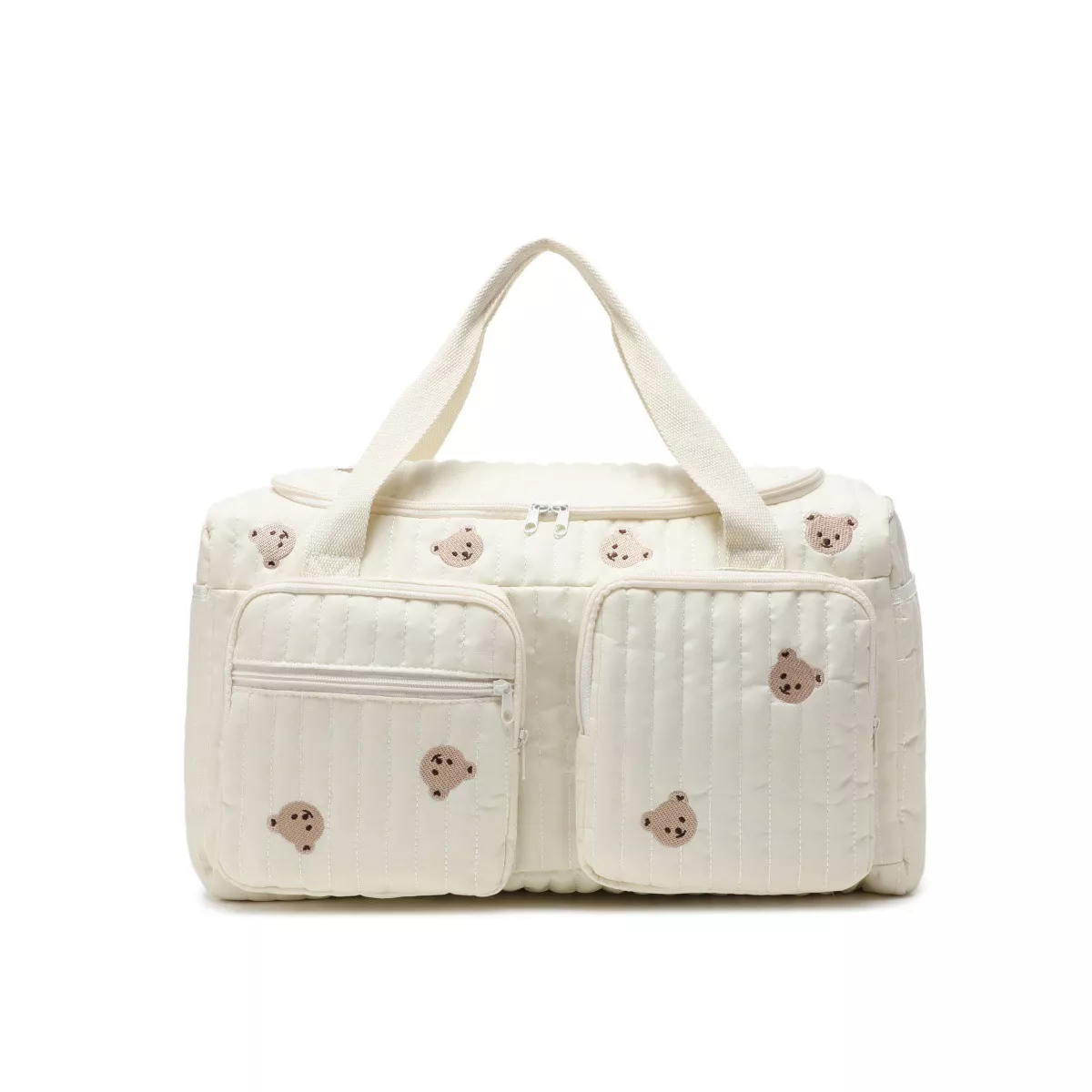 Meet your new go-to mommy bag—an irresistibly cute diaper tote designed to make outings with your little one easier, more organized, and a whole lot more stylish. Crafted from soft, durable cotton fabric and decorated with charming bear and flower embroidery, this beige diaper bag brings together beauty and practicality in the sweetest way.