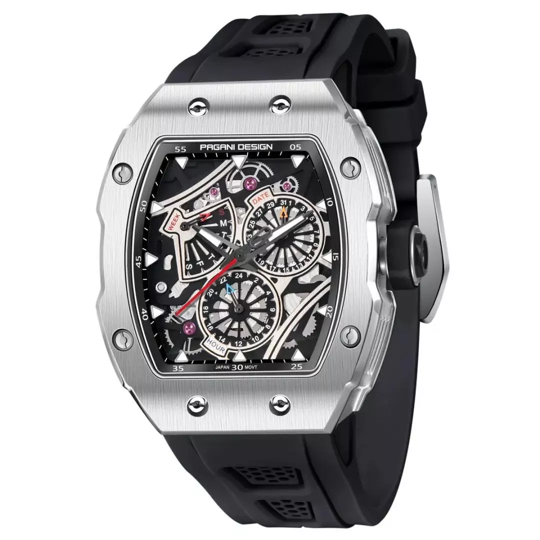 Unlike ordinary sports watches, this one combines high-performance features with a bold luxury look. The large dial offers easy readability, while the clean, numberless face adds a refined touch. Its versatility means it’s perfect for casual days, business meetings, outdoor adventures, and sports activities alike. Every detail, from the secure buckle clasp to the sleek matte finish, has been crafted for men who want both function and fashion in one package.