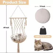 - Fashionable Bohemian Design: Elevate your home décor with this elegant hanging cat hammock. Its tassel details and neutral tones complement any room.