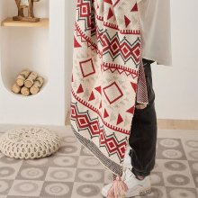 Immerse yourself in the comfort and charm of our Bohemian Geometric Knitted Blanket. This exquisite piece is not just a blanket; it’s a versatile accessory that beautifully blends functionality with fashion. Whether you’re planning a spring picnic, seeking a cozy wrap for chilly evenings, or adding a splash of color to your living space, this blanket is your perfect companion.