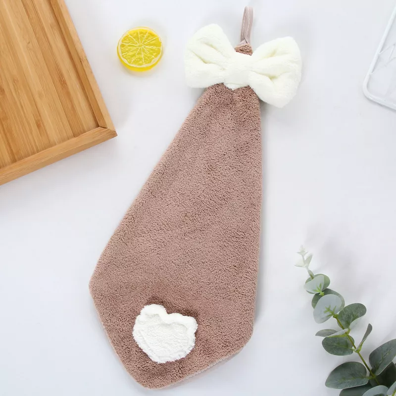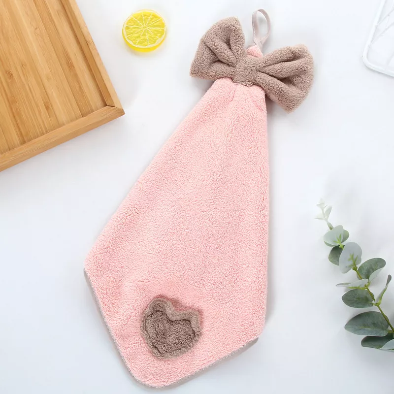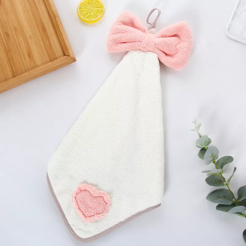 Add a touch of charm and practicality to your home with this bowknot coral velvet hand towel. Featuring a delicate love heart embroidery and a playful bow-knot hook design, this towel isn’t just functional – it’s a beautiful detail for your kitchen or bathroom décor. Measuring 12 x 12 inches, it’s the perfect size for everyday use, whether drying your hands, wiping spills, or keeping surfaces spotless.
