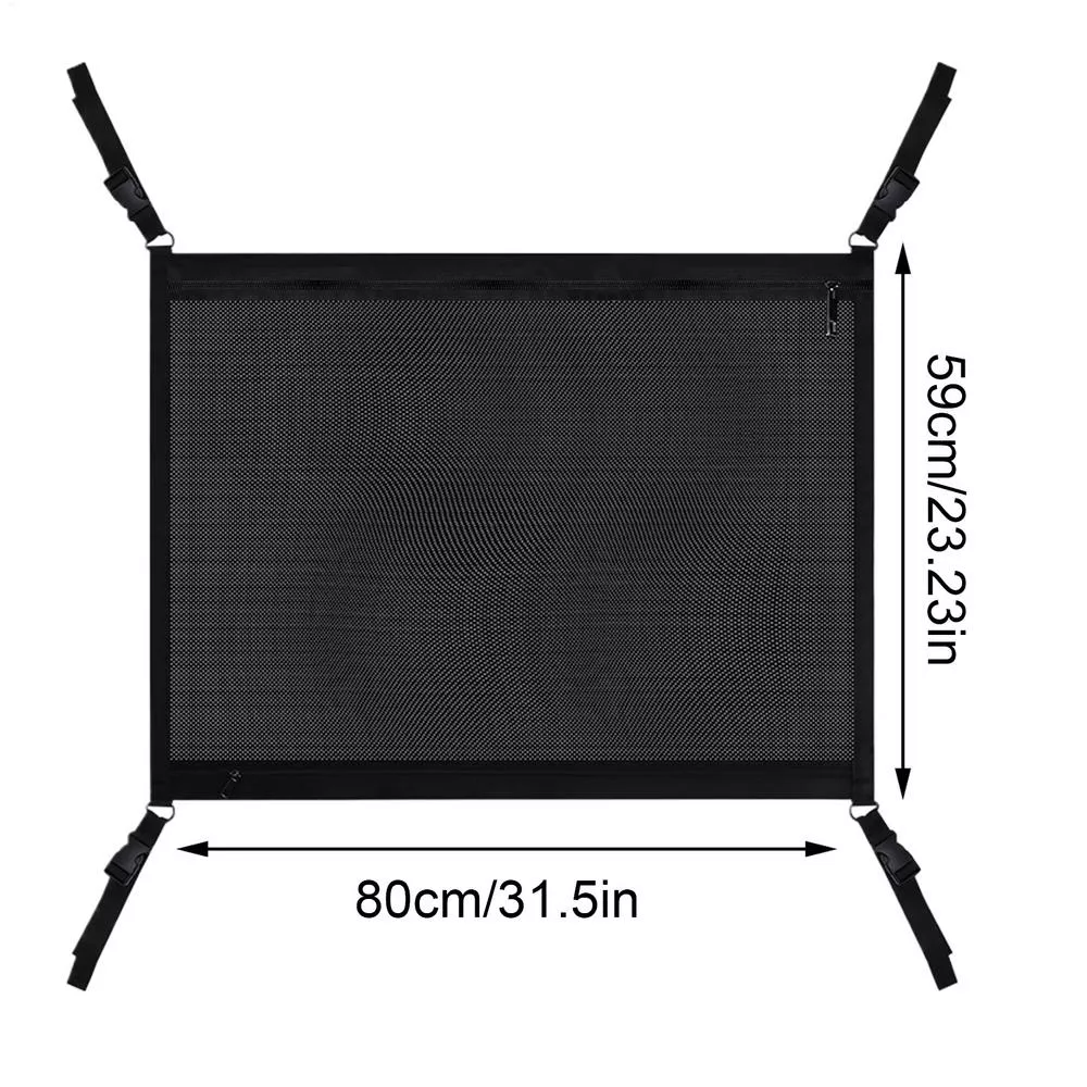 Featuring adjustable dividers and independent compartments, this cargo net helps you separate and categorize belongings of different sizes. From blankets, jackets, and snacks to camping gear or travel essentials, everything stays organized and easy to access. Its overhead design also improves visibility by keeping items out of your line of sight, so you can focus on the road.
