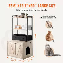 This Cat Litter Box Enclosure goes beyond functionality to add a stylish touch to your home. Its spacious design accommodates small, medium, and large cats, ensuring they have ample room for comfort. The additional shelves and baskets make it easy to keep your home organized, while the durable materials ensure long-lasting use. From the practical magnetic doors to the thoughtful ventilation system, every detail has been designed to make life easier for both you and your cat.