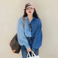 Discover Effortless Style with Our Lantern Sleeve Denim Shirt