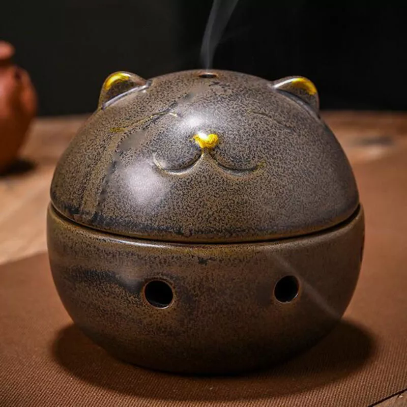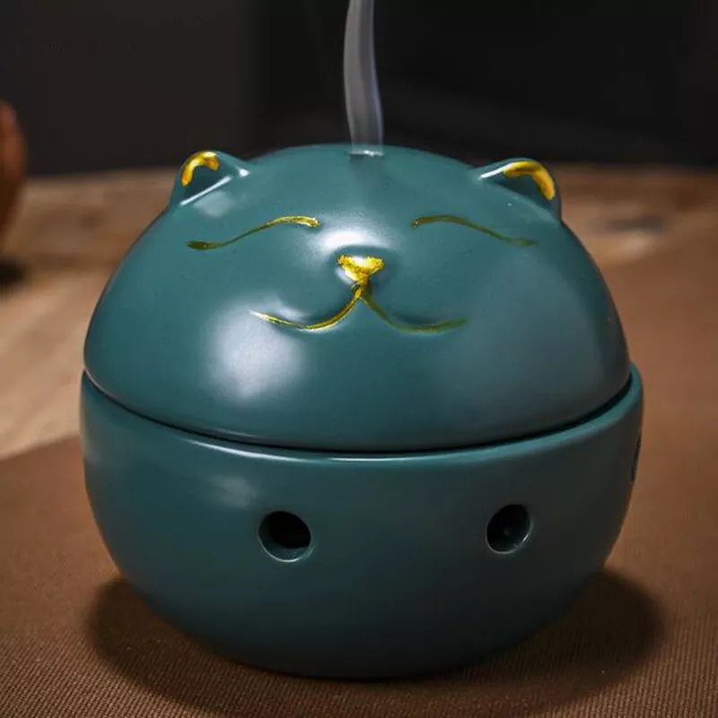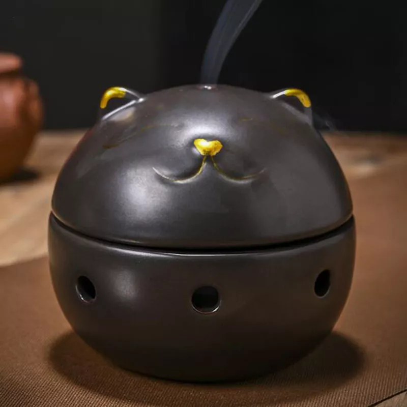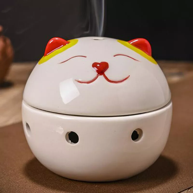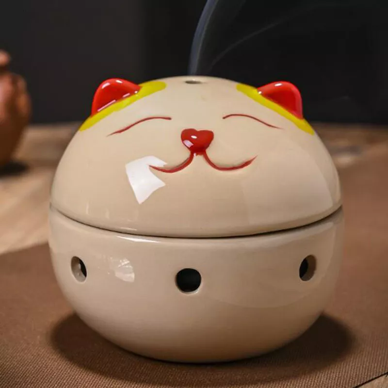 Transform your living room or meditation space with this elegant Chinese style incense burner, designed to bring serenity and warmth into your home. Crafted from high-quality ceramic, this beautifully detailed aroma burner features a charming Wealth Cat censer ball, symbolizing good fortune and prosperity. Its graceful design and natural colors—available in yellow, white, brown, green, and black—make it a perfect decorative accent that blends seamlessly with any décor style.