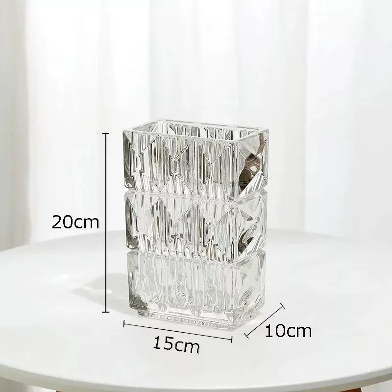 Bring a touch of sophistication and modern charm to your home or office with our Clear Crystal Glass Hydroponic Vase. Crafted from high-quality glass, this sleek and minimalist vase is perfect for adding a fresh, decorative accent to any room. Whether you want to brighten up your desk, living room, or any other space, this square vase provides a stunning, functional piece of decor for your indoor plants and artificial flowers.