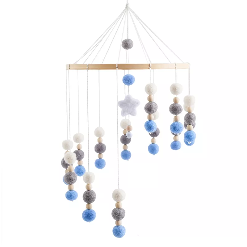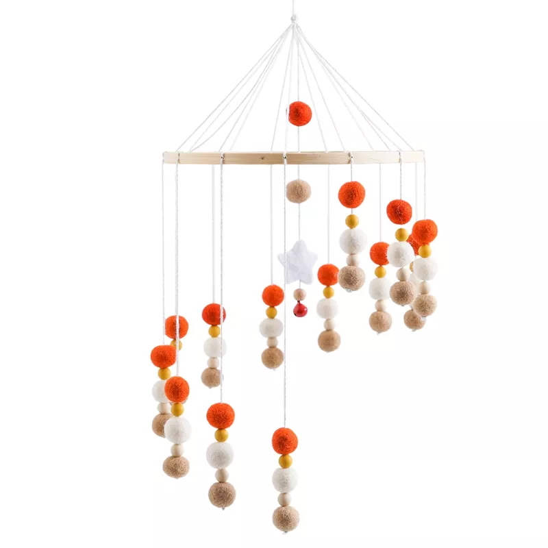 Unlike ordinary crib toys, this mobile offers a multi-sensory experience—blending movement, sound, and touch to promote healthy brain development. The contrasting colors enhance visual perception, while the soft jingling rattles develop auditory skills. The wooden construction adds a natural, eco-friendly touch, ensuring your baby plays in a safe environment. Its rotating design keeps your baby entertained, encouraging hand-eye coordination as they reach out to interact with the hanging toys.