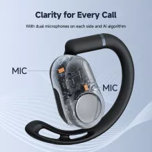 • Dual Microphone Clarity: AI-enhanced microphones capture your voice with precision, filtering out background noise for flawless calls.