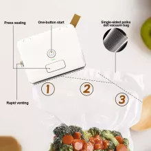 What sets our Mini Vacuum Sealer apart is its dual functionality in a mini-sized gadget. Its powerful suction capability, combined with a convenient built-in cutter and rechargeable design, offers unmatched convenience and efficiency in food preservation.