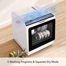 What truly makes our dishwasher special is its combination of efficiency, convenience, and adaptability. The built-in water tank offers unparalleled ease of use, eliminating the need for complex installation. The variety of washing programs ensures that all your dishes, from the sturdiest pots to the most delicate glasses, receive the care they need. And with its compact design, this dishwasher fits seamlessly into your life and space, not just your kitchen.