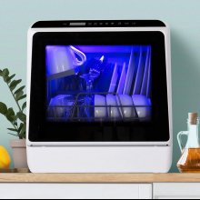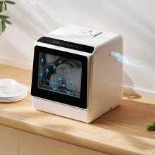 This dishwasher fits like a glove on my kitchen counter right next to the sink. Setting it up was a breeze, and using it is just as easy. I usually give my dishes a quick rinse before popping them in and hitting the speed wash setting. Even when I pack it full, everything comes out sparkling clean. I'm all about the sensor light and how well the drying function works, except I still end up washing pots and pans by hand since it's just my partner and me. The only real gripes I have are pretty minor. For starters, if I try to fill the water tank using the spray feature on my faucet, I can't hear the beep that tells me it's full because of the noise, so I stick to filling it with the pitcher they provided. Also, the power button flashes when the dishwasher isn't running, which kinda bugs me, so I just unplug it once it's done. And, the cup rack isn't big enough for regular-sized mugs, but it's no big deal—I use it for other stuff like utensils and small bowls instead. Overall, despite these small issues, I'm really happy with it. It's made a huge difference in my kitchen routine, keeping my counters clear and my sink empty.