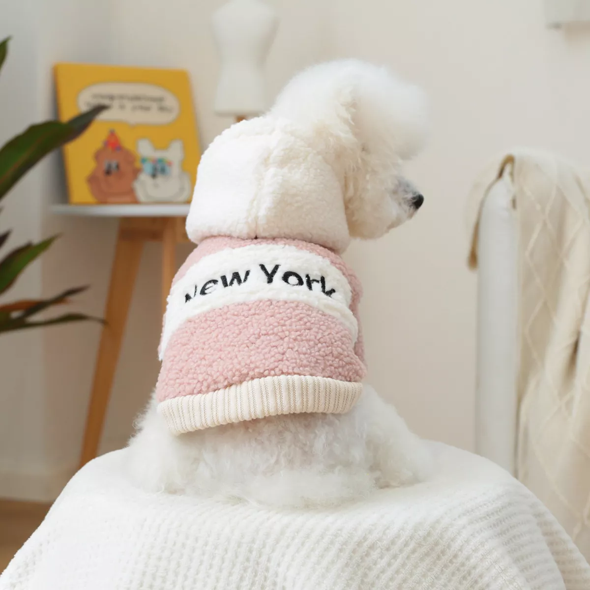 Keep your furry friend warm, comfortable, and irresistibly cute with this thick plush hooded jacket—perfect for fall and winter adventures. Designed with soft lambing fleece, a cozy hood, and charming contrasting embroidery, this jacket blends style and function to keep your pet feeling their best when the temperatures drop.