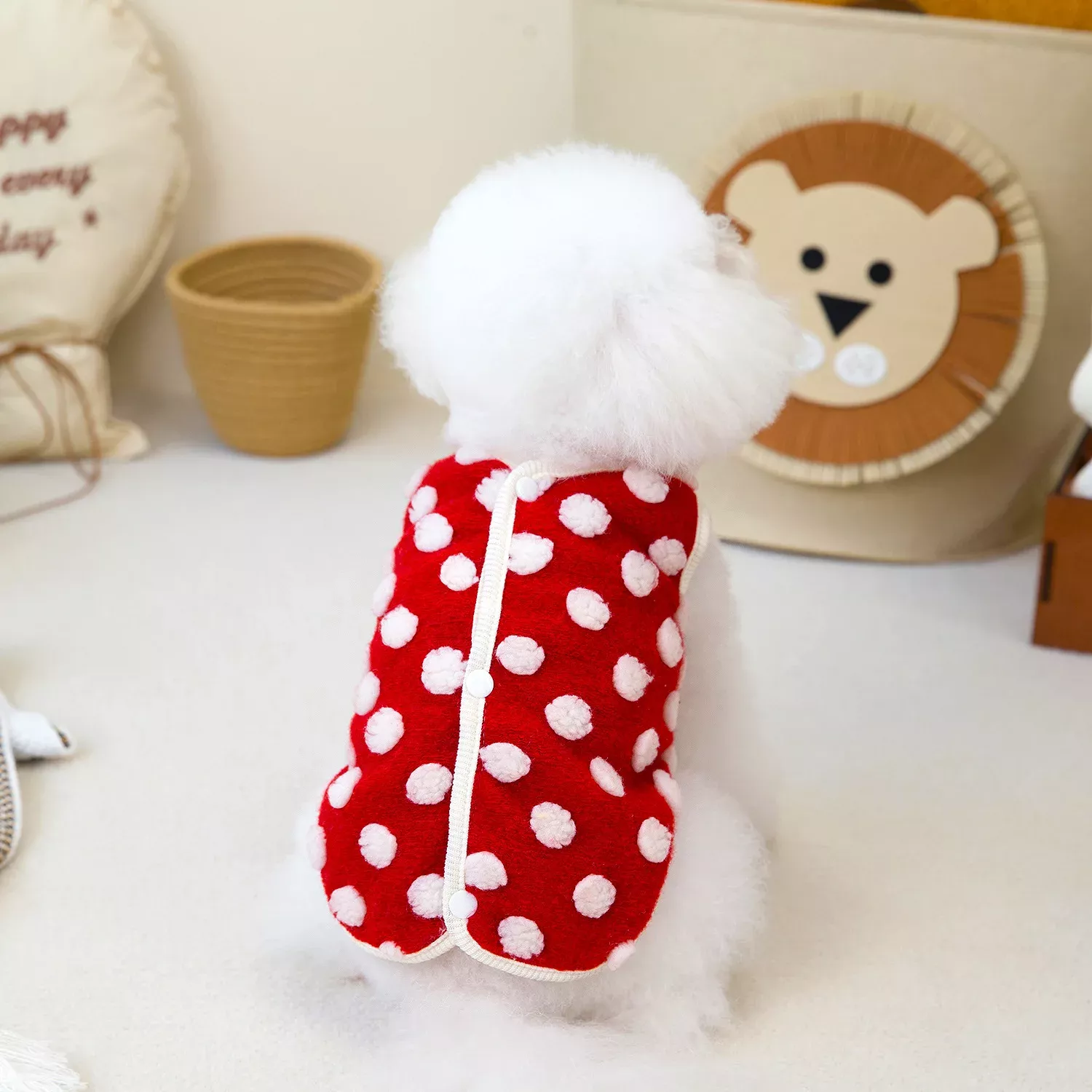 Give your pet the gift of warmth and cuteness—bring home this cozy polka dot plush coat today and make every walk a delightful one!