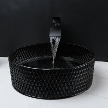 Recently, I embarked on a journey to revamp our cozy powder room and stumbled upon this modern black glass basin, which truly stood out. From the moment the package arrived, I was impressed by how well-protected it was, ensuring no damage during transit. It's not just any basin; it's a high-quality piece of art that perfectly combines functionality with elegance. The round, black tempered glass basin is quite a spectacle, boasting a remarkable durability that's resistant to scratches, and trust me, it feels as sturdy as it looks. Installation was a breeze, something I greatly appreciated as someone who prefers DIY projects. The comprehensive set included not just the basin but also a sleek, solid brass chrome-finished faucet and even a chrome pop-up drain, all of which were surprisingly easy to install without the need for professional plumbing services. This basin has transformed our powder room, providing a luxurious touch that we didn't know we needed. Its generous dimensions offer ample space, making it not only a visual centerpiece but also incredibly functional. The glossy surface has made cleaning a task I no longer dread, a significant plus in my book. Overall, this basin has exceeded our expectations in every possible way.