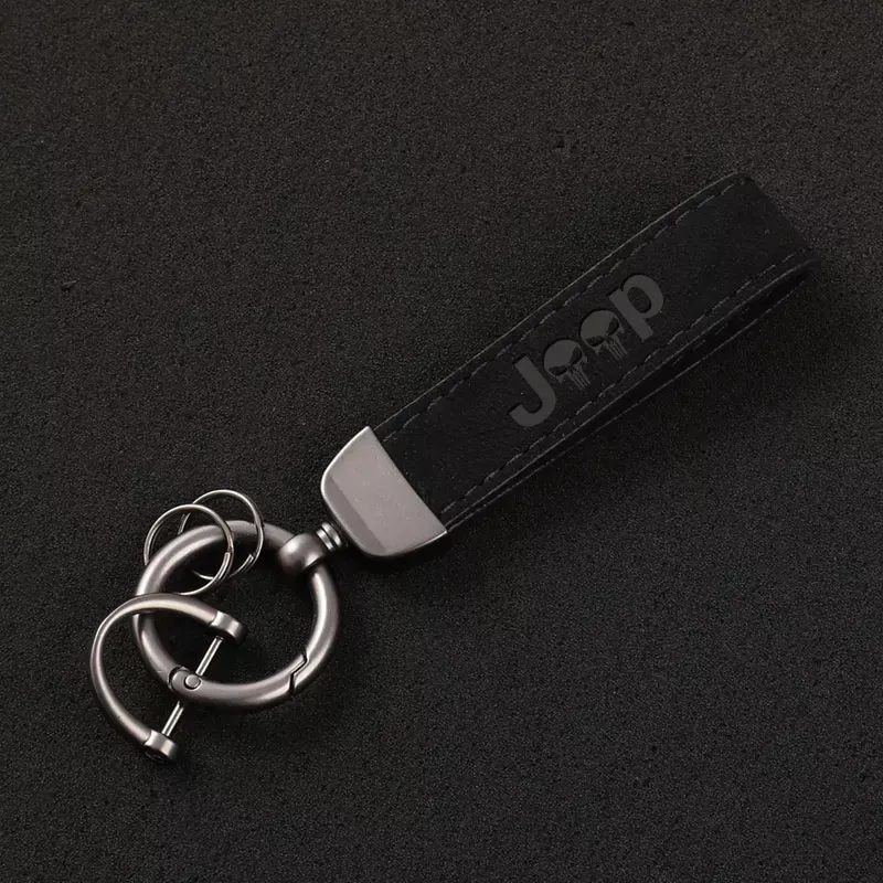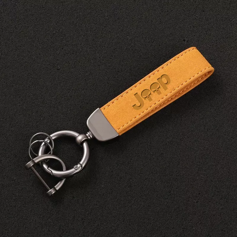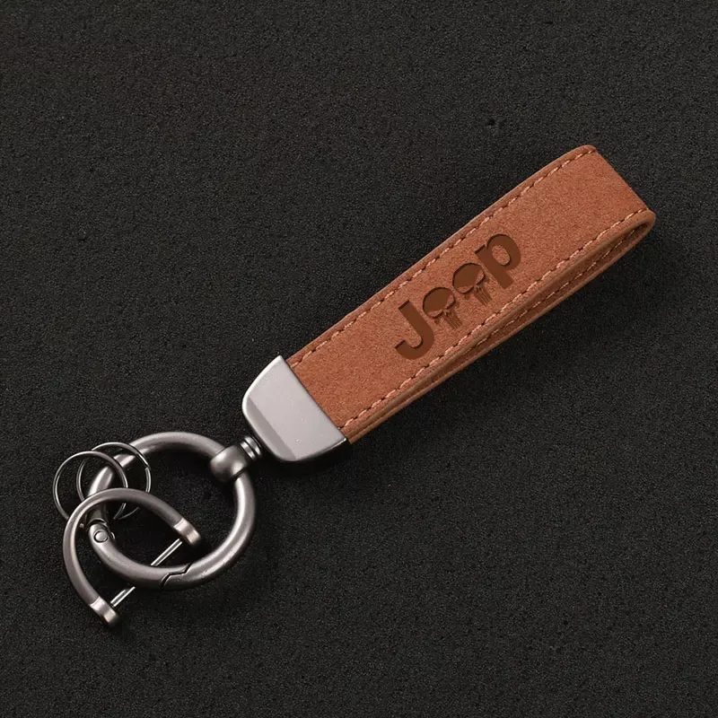 Custom Suede Leather Car Keychain Key Ring for Jeep Vehicles – 3D Imprint Design