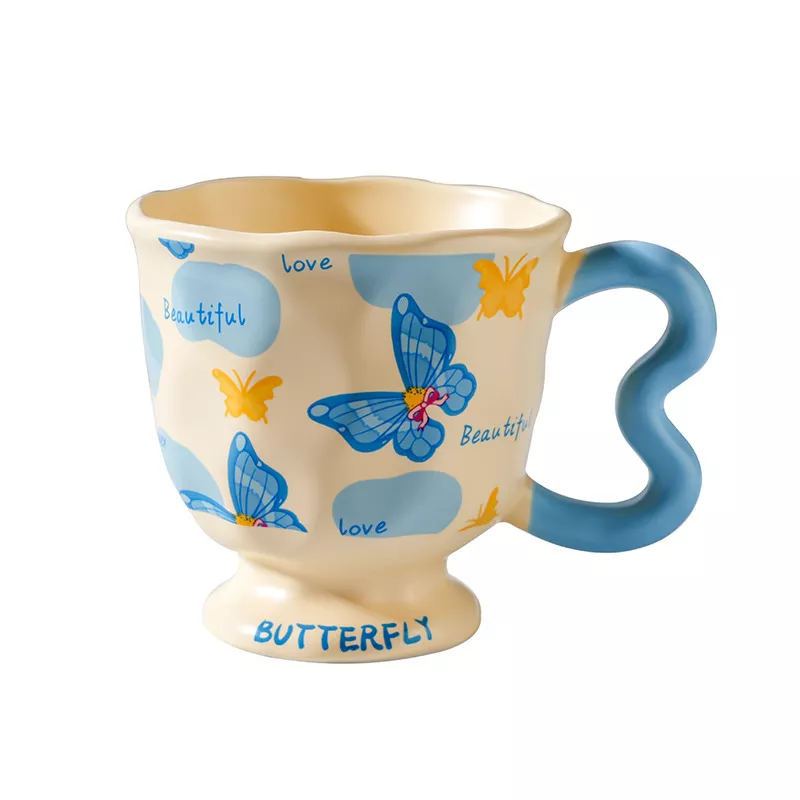 Cute Ceramic Butterfly Coffee Mug – Elegant Tall Cup for Home or Office