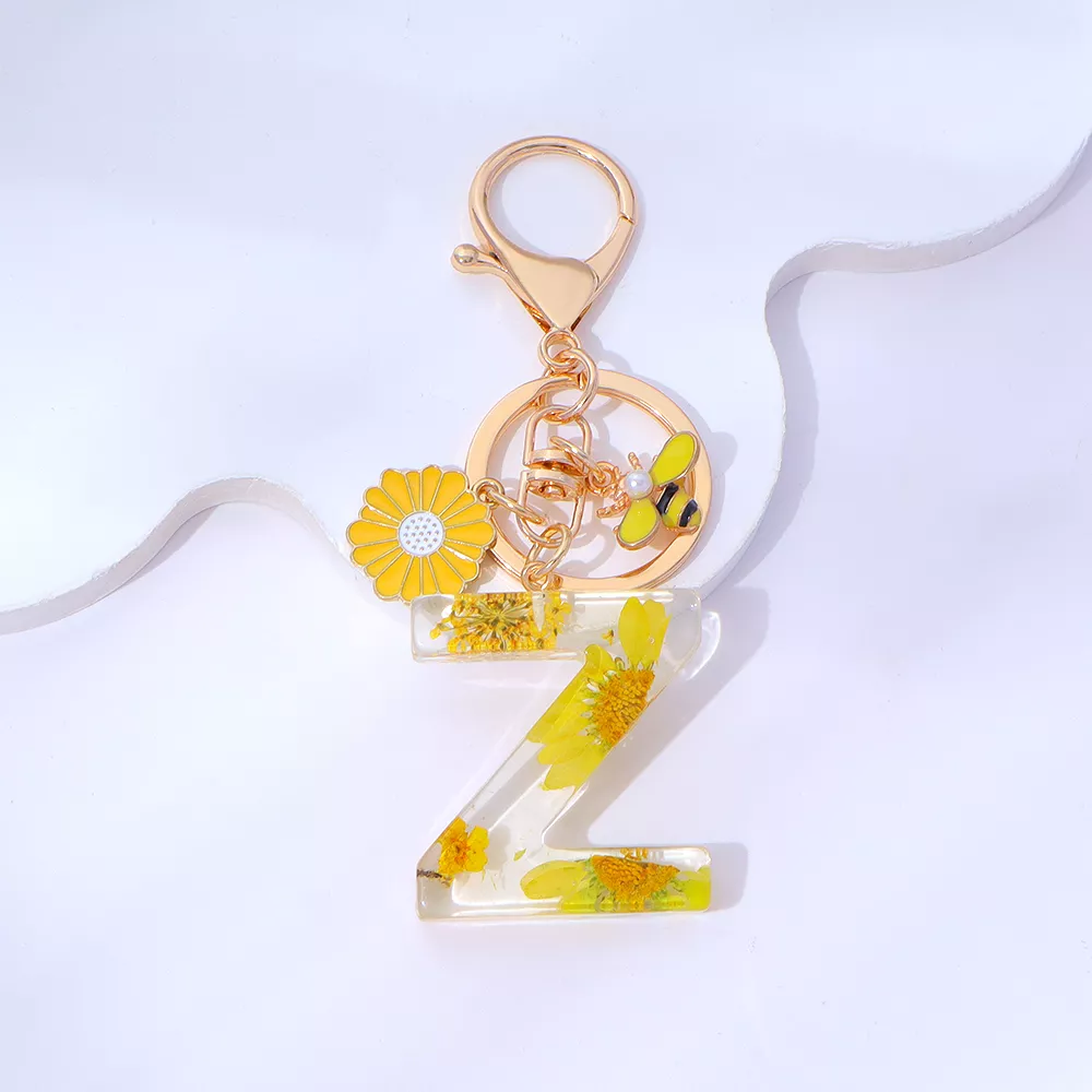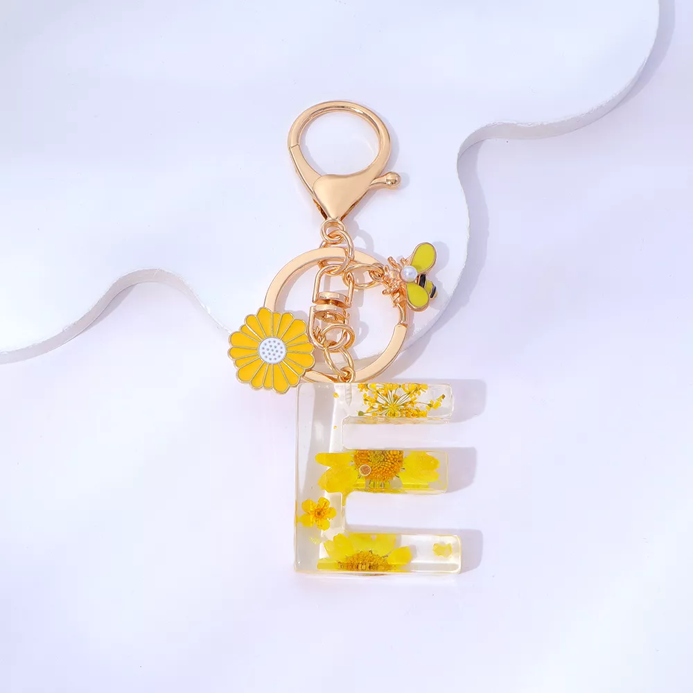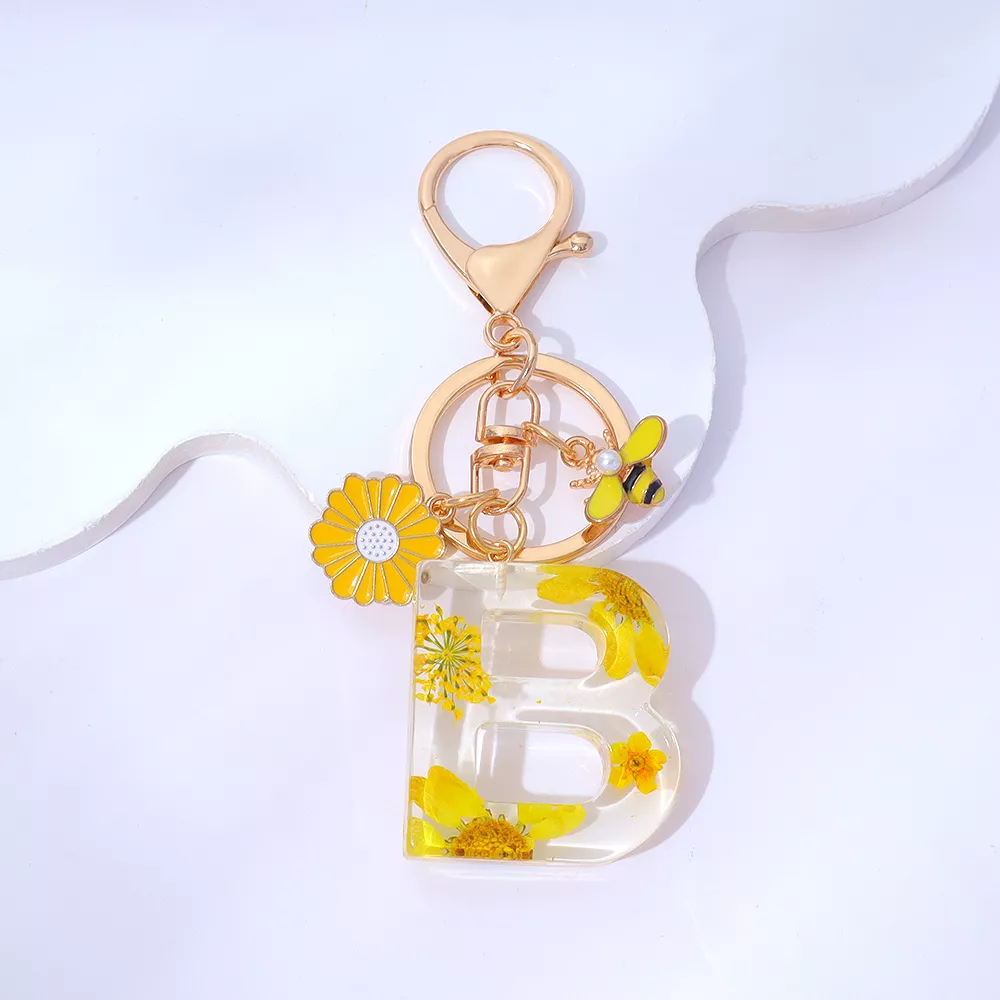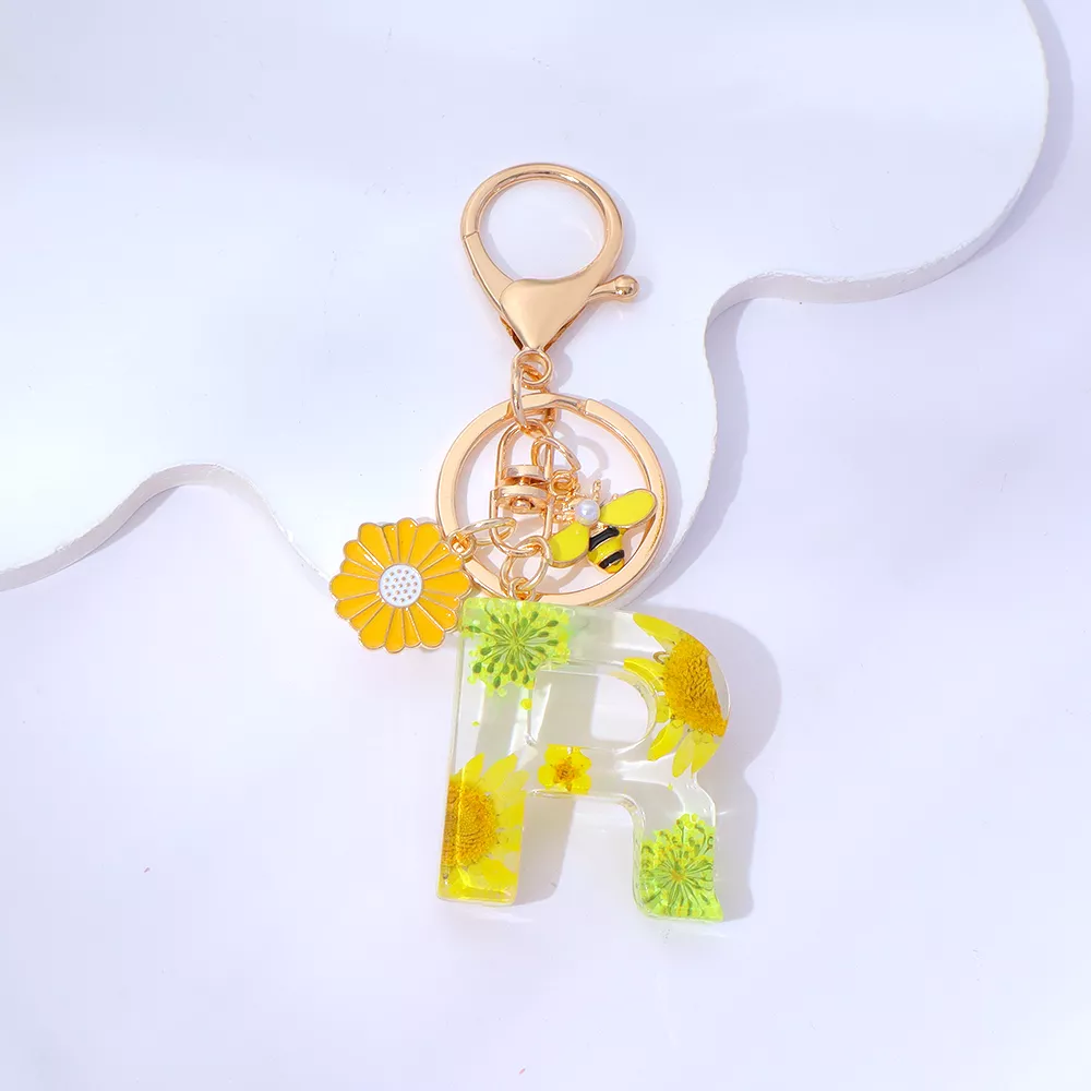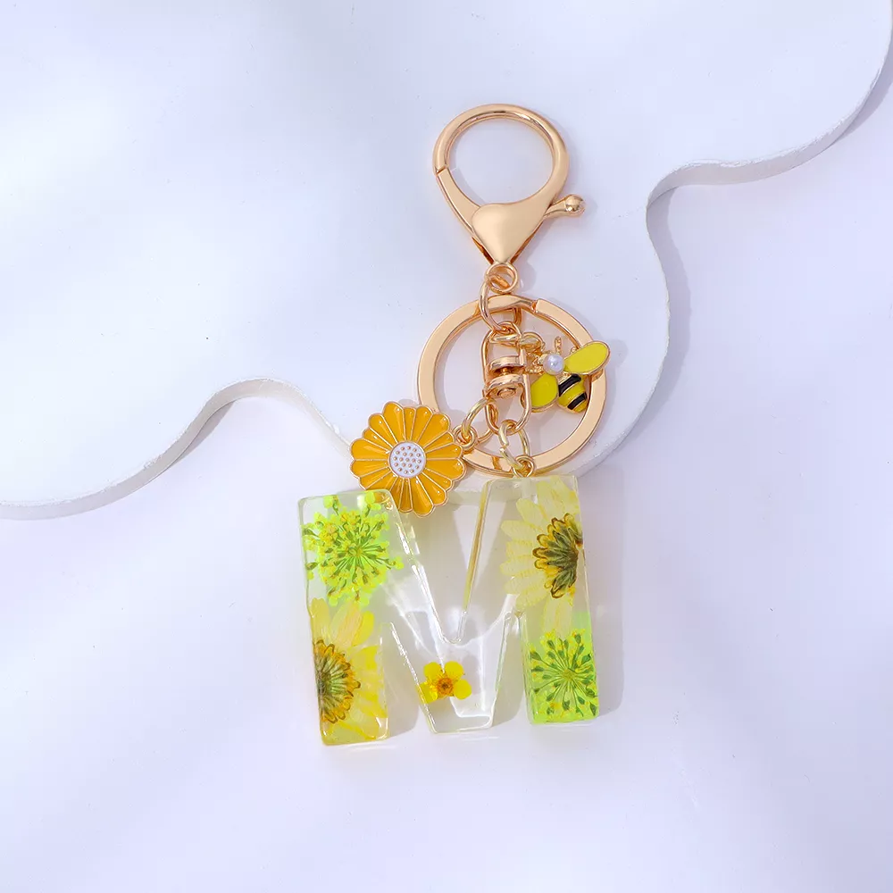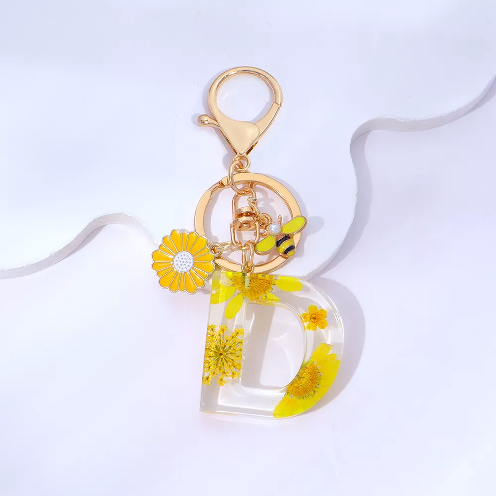 Cute Resin Initial Keychain with Bee & Daisy Charm
