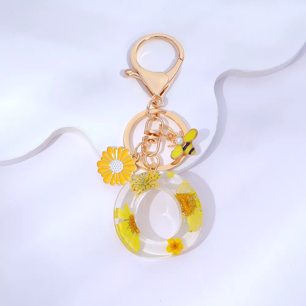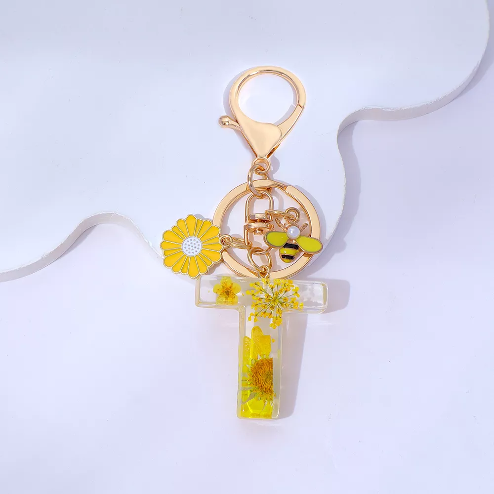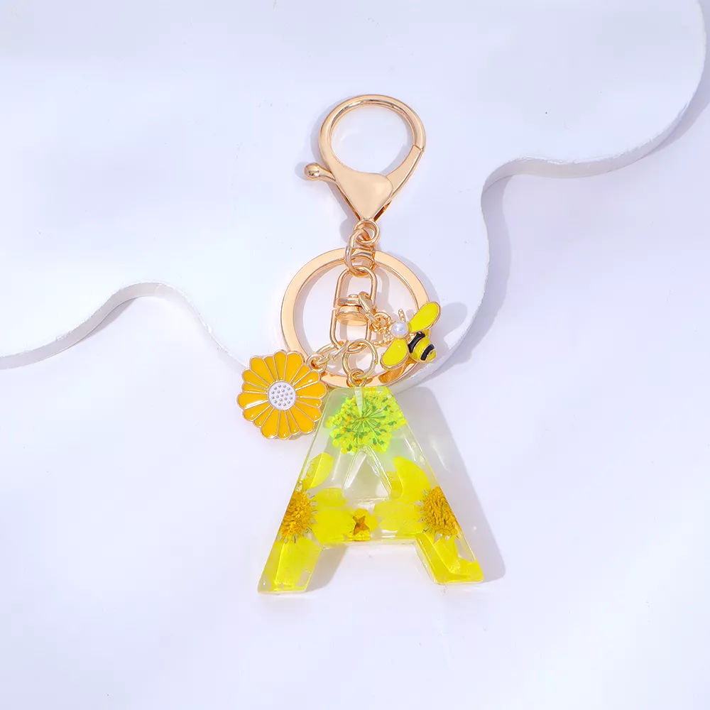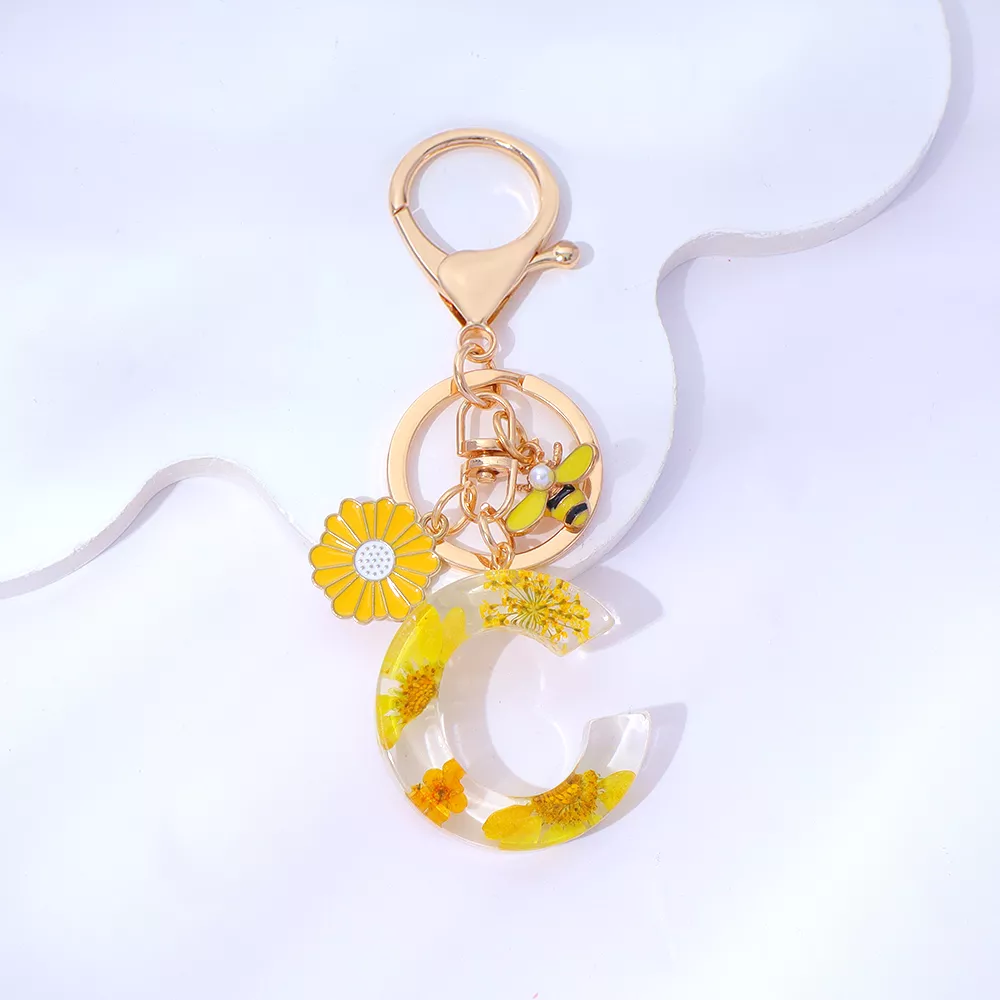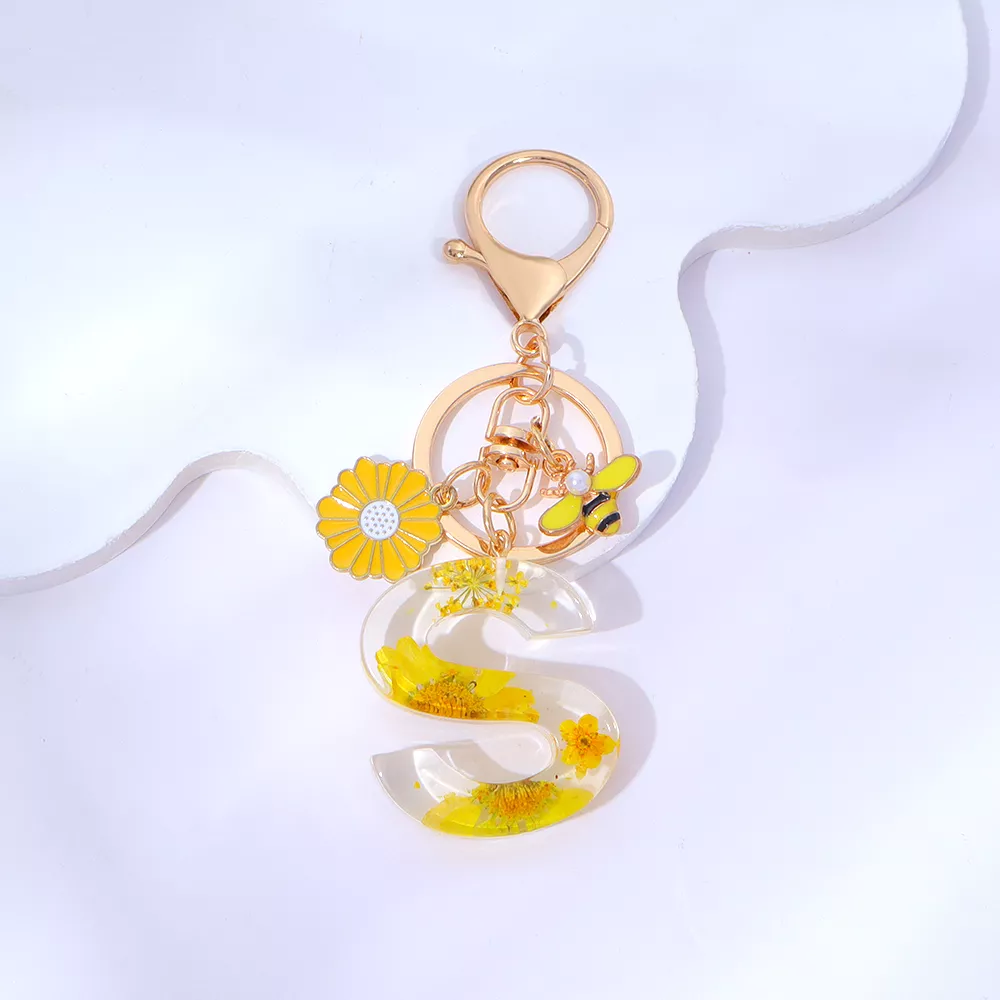 Cute Resin Initial Keychain with Bee & Daisy Charm
