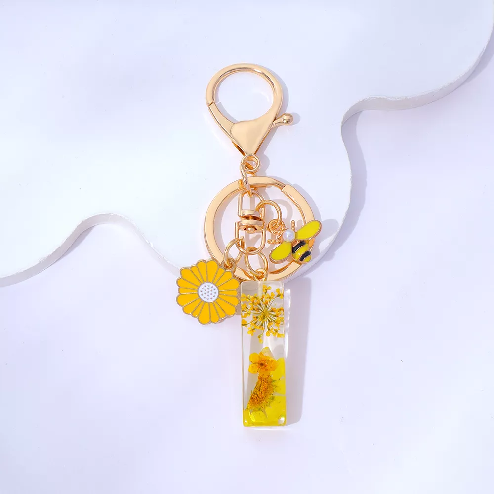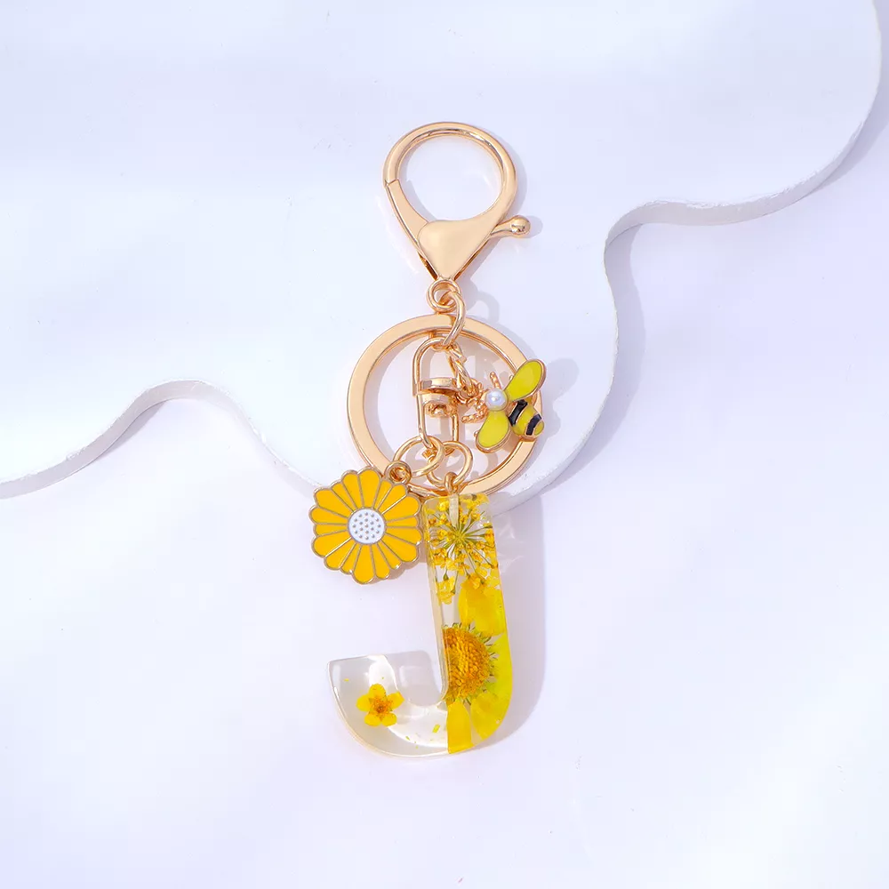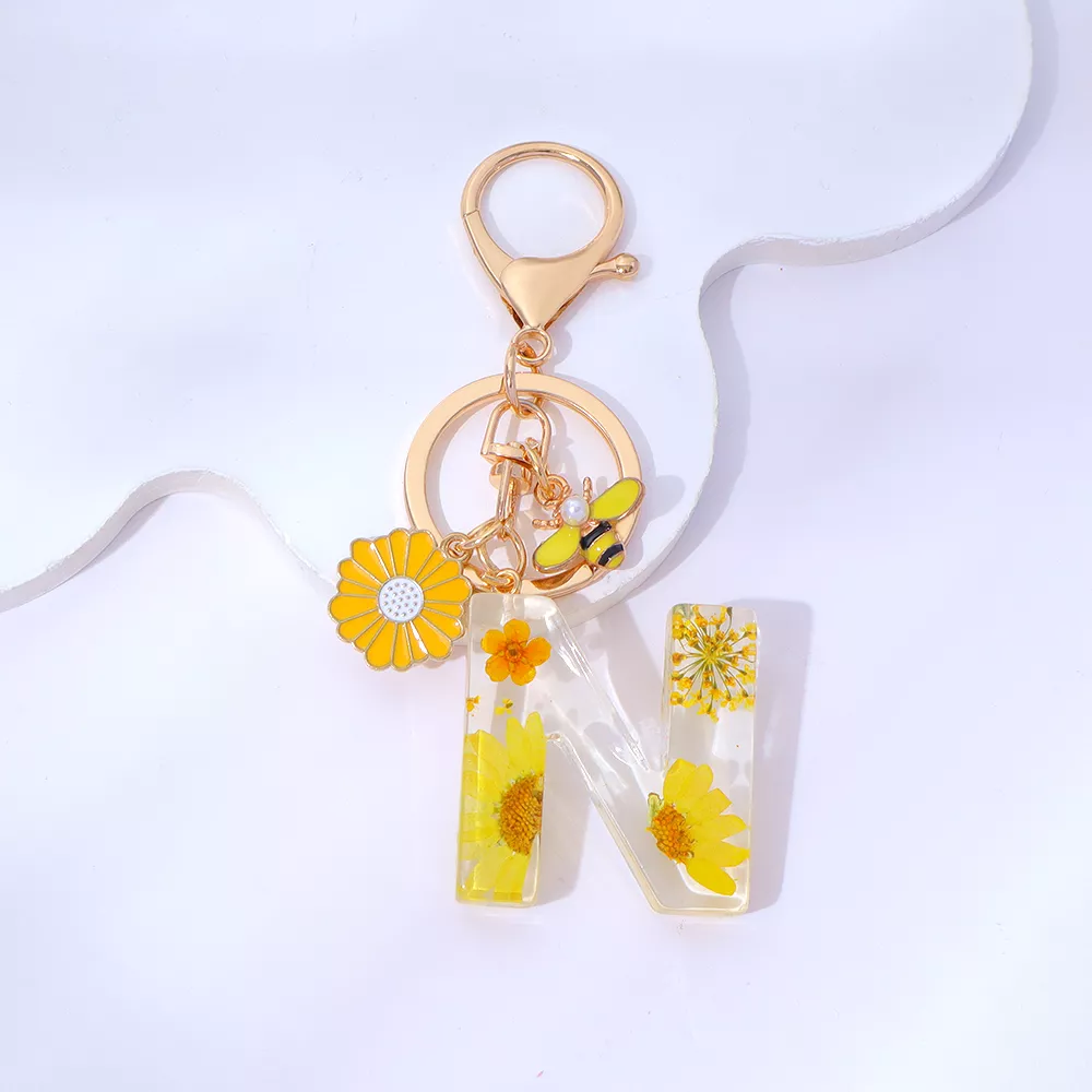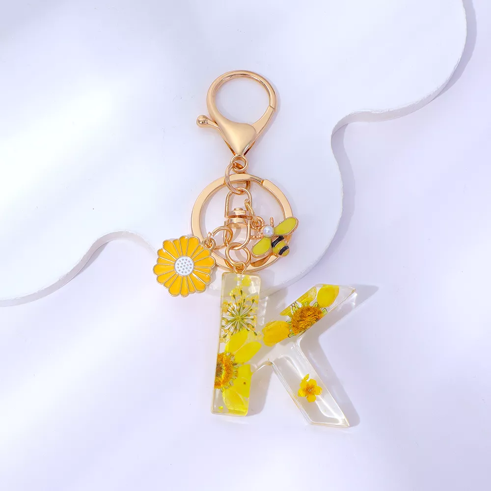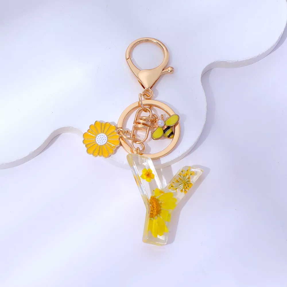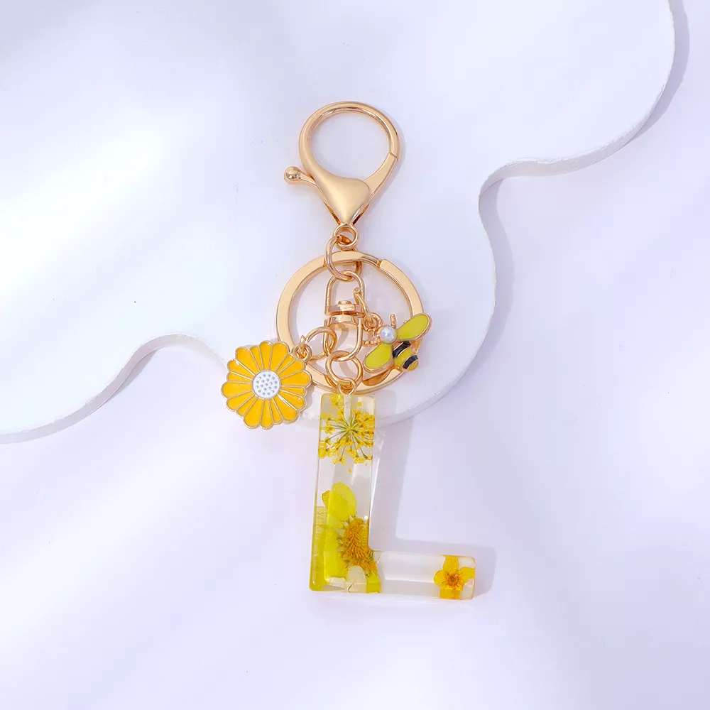 Cute Resin Initial Keychain with Bee & Daisy Charm