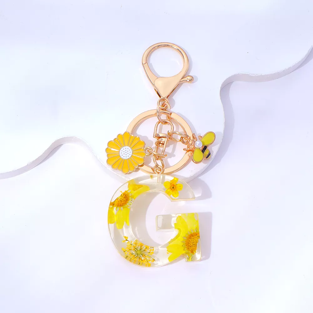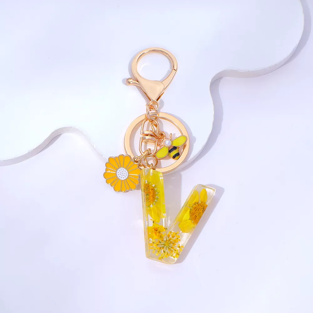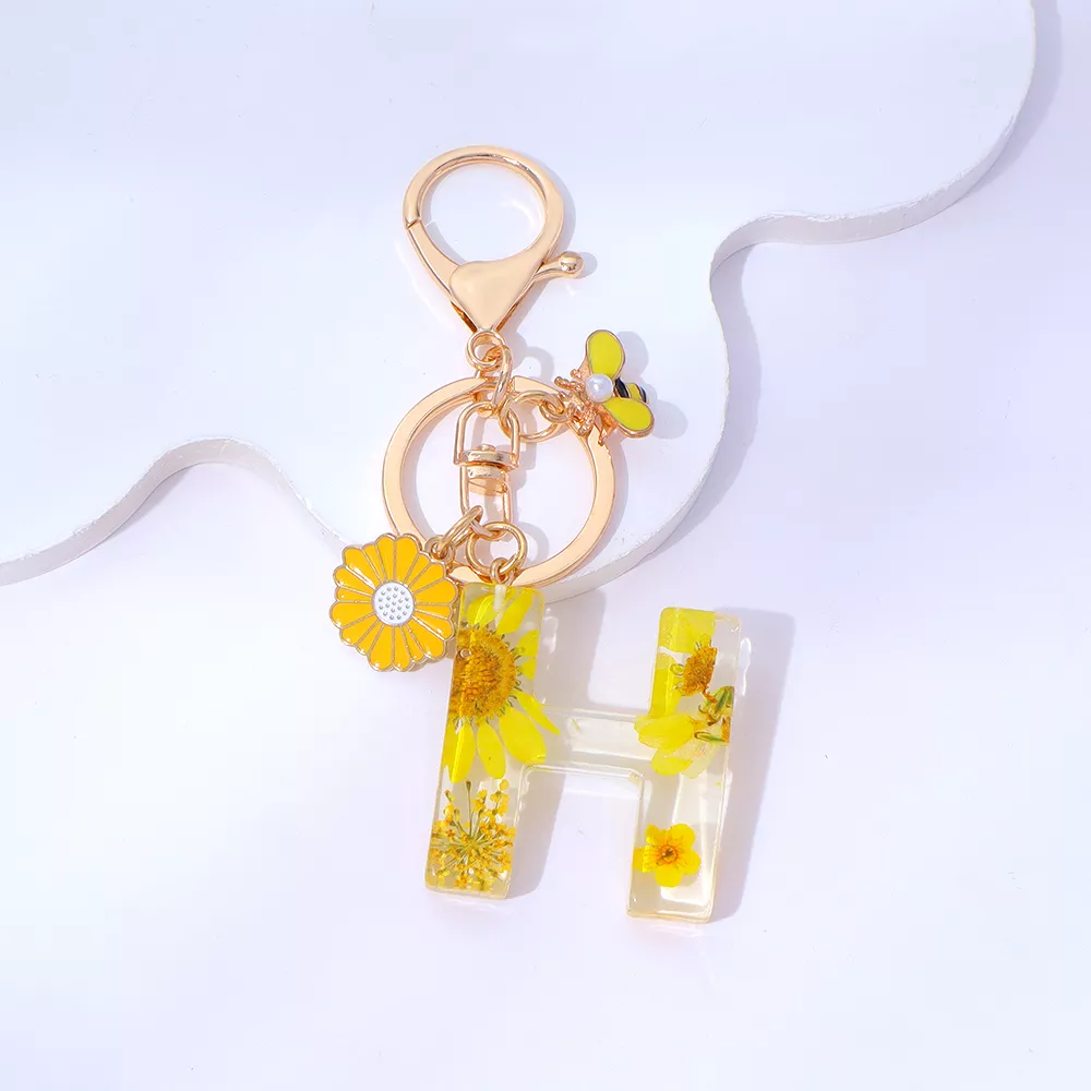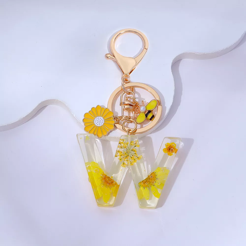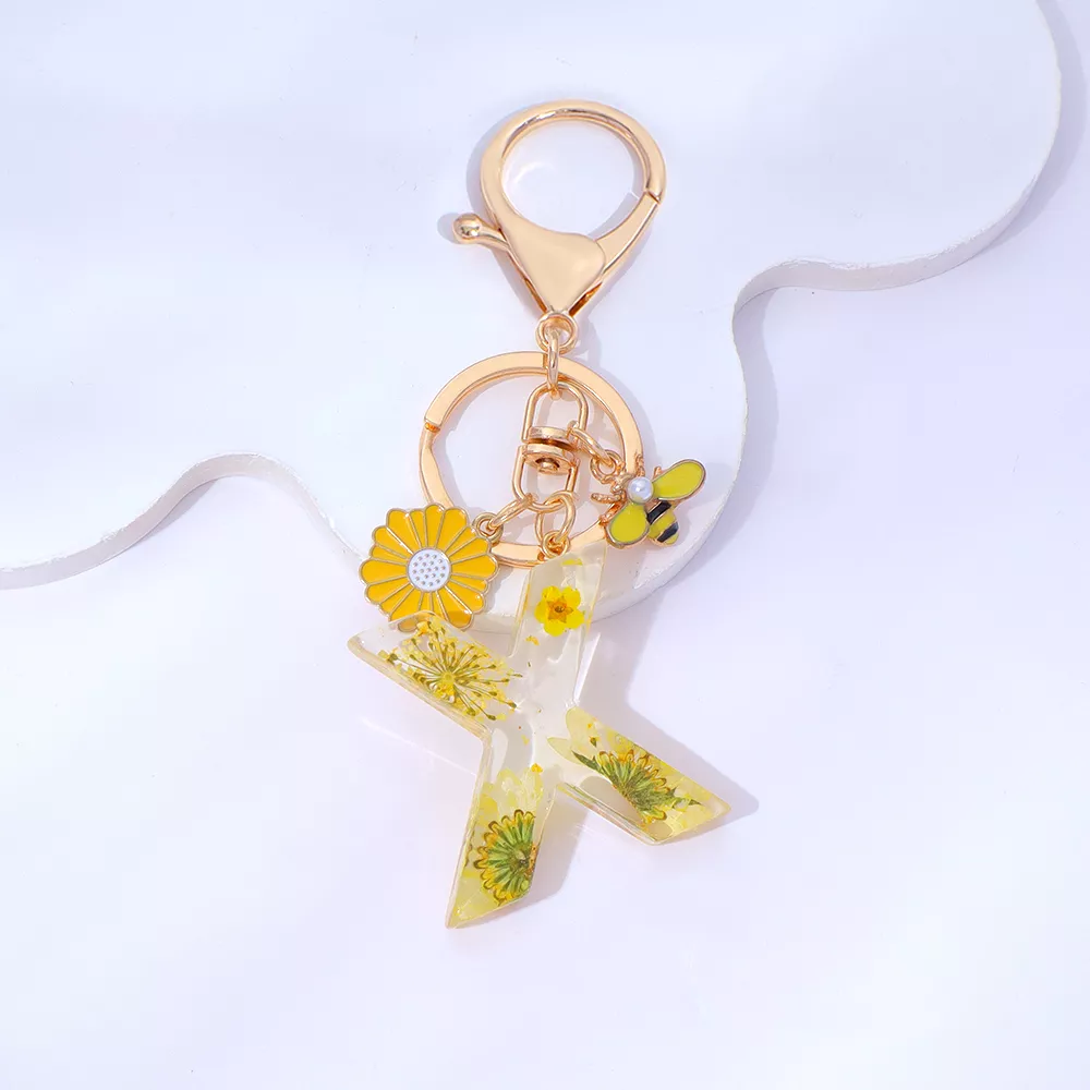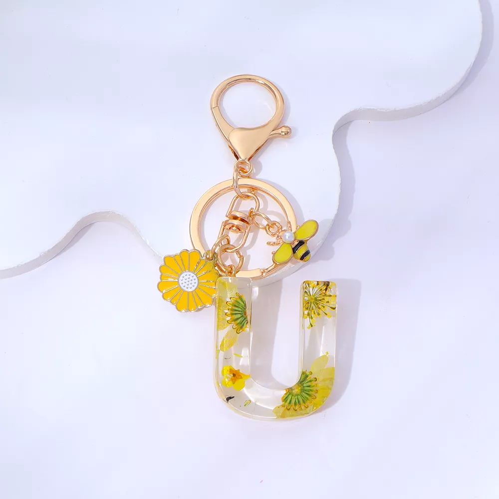 Cute Resin Initial Keychain with Bee & Daisy Charm