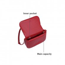 This lovely handbag caught my eye because of its vibrant red color. It's the perfect size – not too big, not too small – just right for all my essentials.