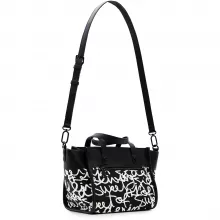 Crafted with attention to detail, this bag features a classic black and white color palette with contrasting accents for a chic, standout look. Its dual handles and adjustable, removable shoulder strap provide versatile ways to carry, giving you the freedom to adapt to any occasion. The zip closure ensures your belongings are secure while maintaining a polished finish.