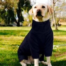 This dog winter coat is designed to ensure your pet’s comfort and warmth without sacrificing style or functionality. The double-layered polar fleece material traps heat effectively, providing superior protection during frosty days. Its four-legged design covers more of your pet’s body, ensuring full insulation against the cold. With its elastic cuffs and zipper closure, you can dress your dog quickly and stress-free.