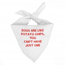 Bright design and high-quality materials are what distinguish Dogs are Like Potato Chips Pet Bandana. We guarantee that the fabric will not fade or stretch, and your pet will be able to wear this bandana for many years.