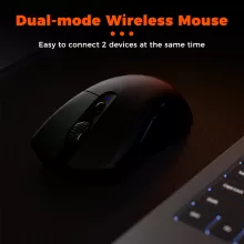 Take your gaming experience to the next level with this feature-packed dual-mode wireless gaming mouse. Designed for serious gamers and multitaskers, this mouse combines cutting-edge technology with ergonomic design to deliver unparalleled performance and ease of use. Whether you’re battling it out in competitive games or navigating complex workflows, this mouse is built to keep up with your every move.