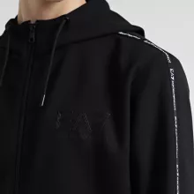 The EA7 Men’s Sweatshirt redefines casual comfort with its thoughtful details and minimalist design. The hood offers a practical solution for chilly winds, while the zip fastening allows for versatile styling options. Whether worn fully zipped for warmth or slightly open for a laid-back look, this sweatshirt delivers exceptional versatility. The polyester construction provides a lightweight yet durable finish, making it ideal for daily wear during the colder months.
