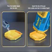 Love how it creates a ton of bubbles and is durable for long play sessions. The downside is that it doesn't hold the bubble liquid inside. You have to dip it in a larger bowl, then press the button. It creates a cluster of small bubbles.