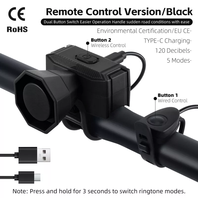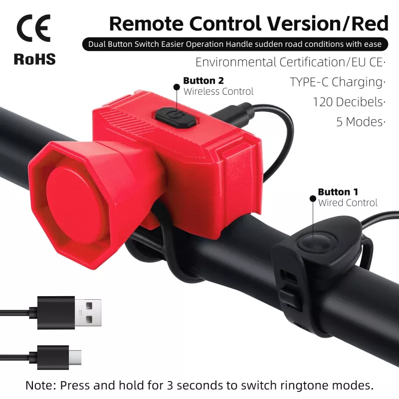 Upgrade your cycling safety with this compact electric bike bell designed to deliver a loud and clear 120 dB alert. Made from durable ABS material and weighing just about 1.5 oz, this mini horn packs power into a lightweight, scratch-resistant design. With easy installation and a waterproof build, it ensures reliable performance whether you’re riding on sunny streets or through unexpected rain.